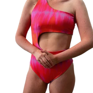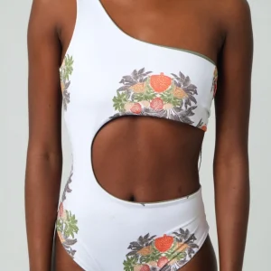 Maillot de bain une pièce avec bonnets ronds, bretelles tressées et embouts brodés de pierres.
